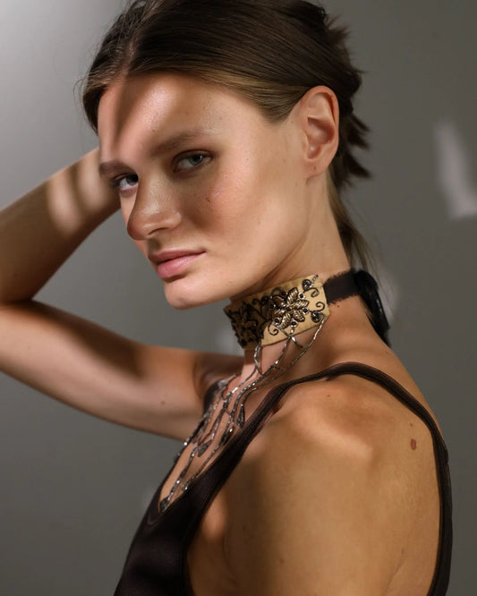 COLLAR BUFANDA BORDADO VERDE BOTELLA