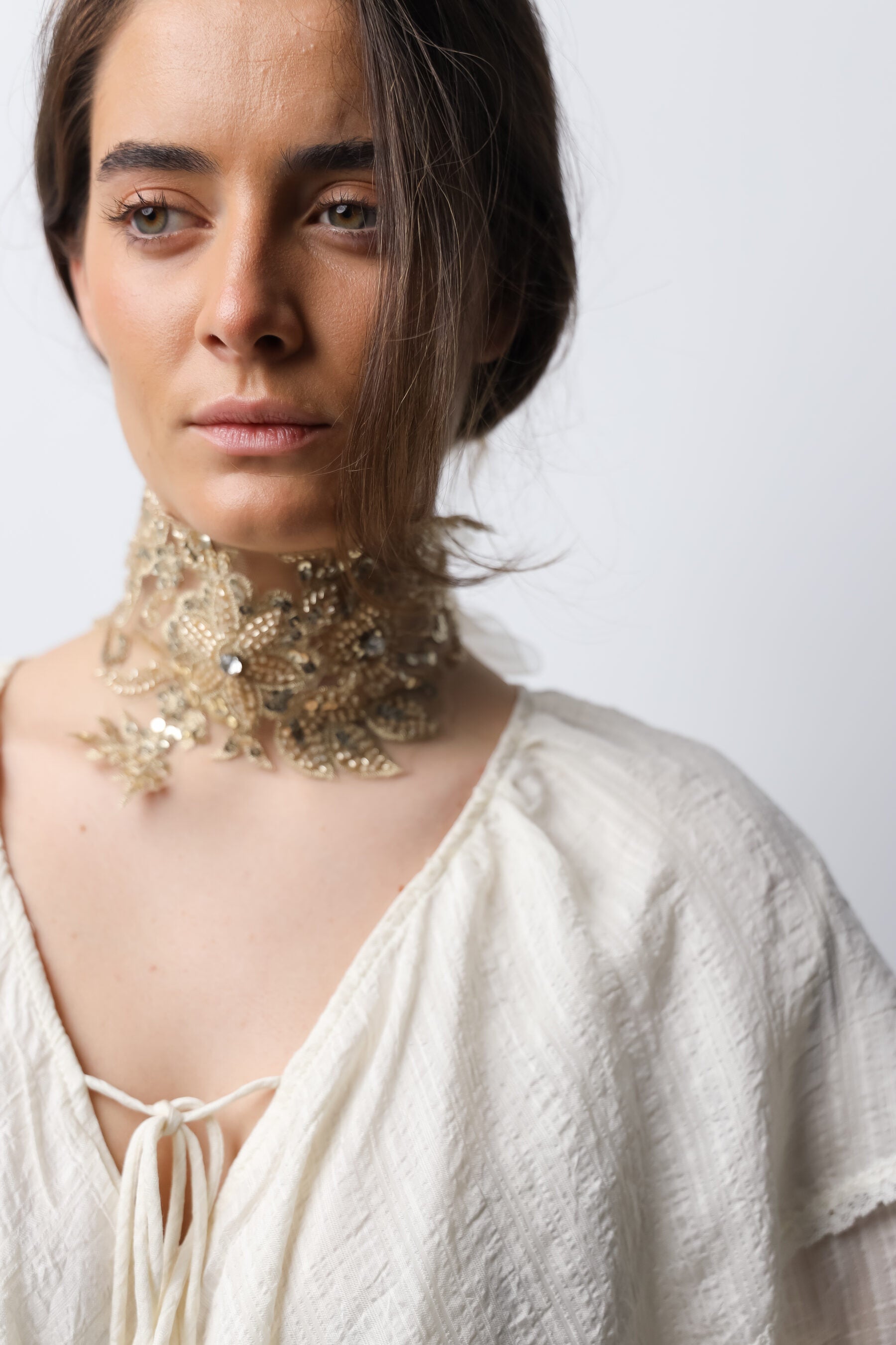 Choker de inspiración vintage con pedrería engarzada. Acabado envejecido. Cierre trasero ajustable.