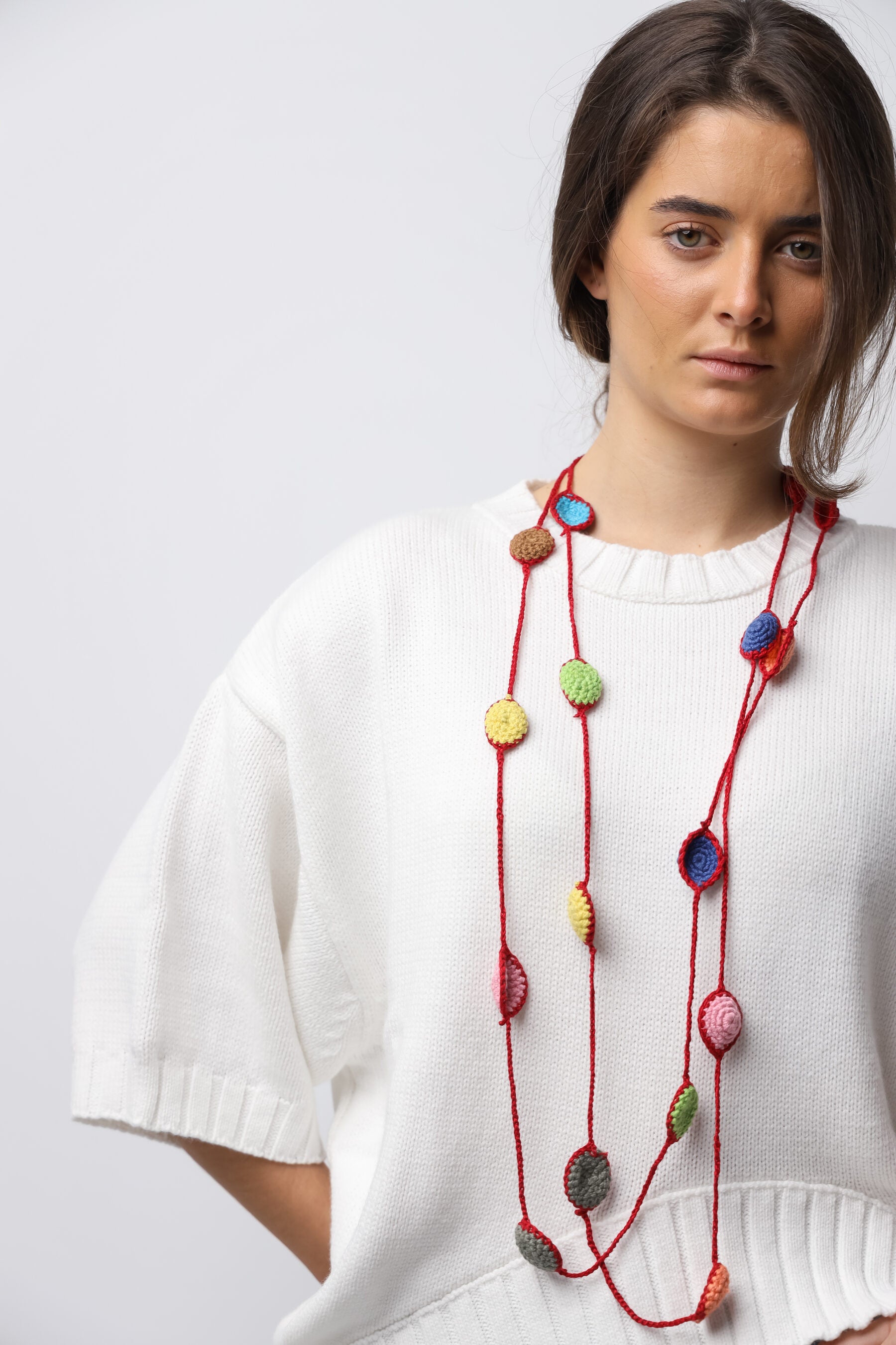Collar en tejido crochet multicolor. Confección artesanal. Cierre ajustable.