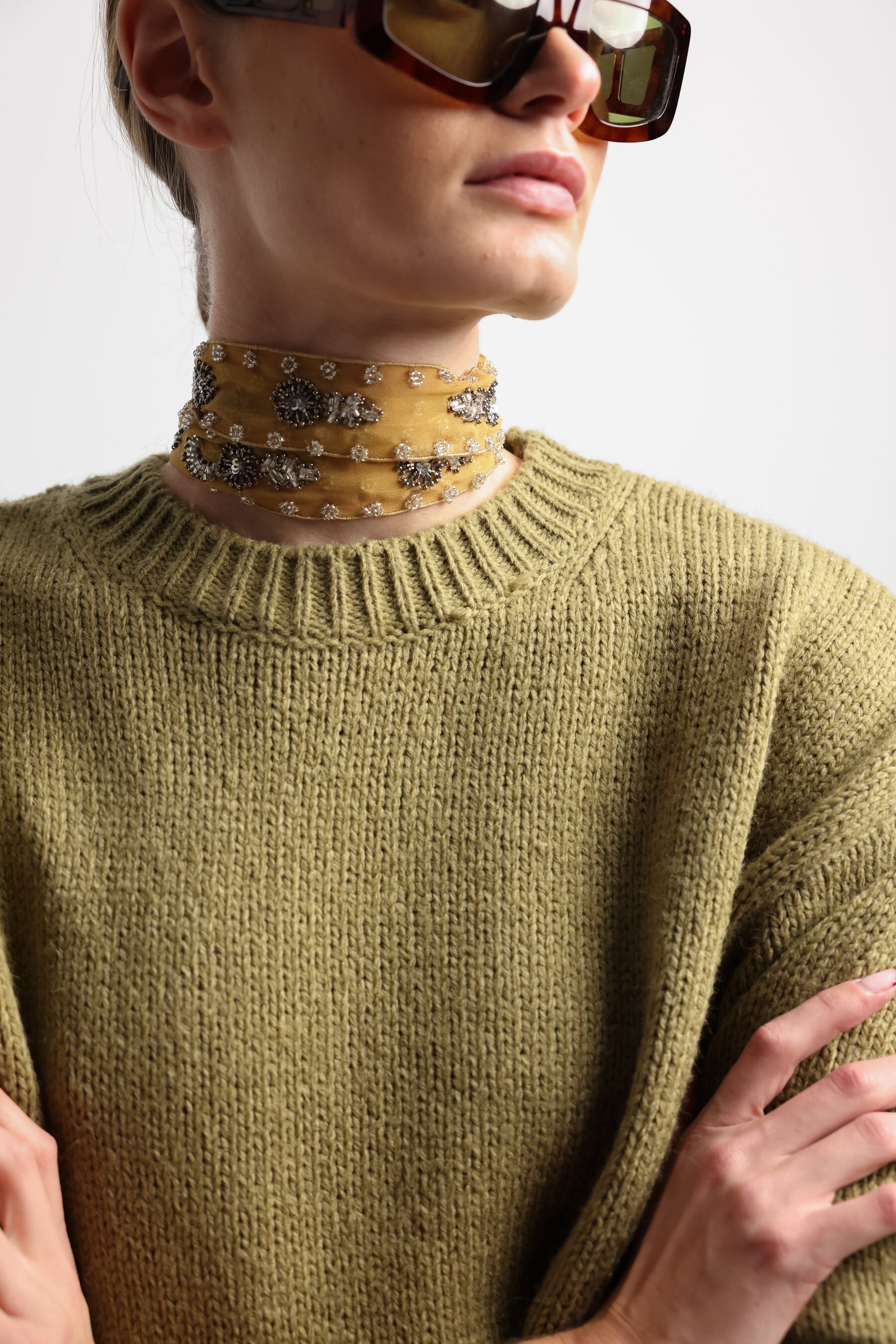 COLLAR ORGANZA BORDADO MOSTAZA I The New Gallery